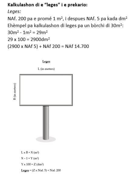 - Un bòrchi ku anunsio di: Ta Bende/Ta Hür, ku un superfisie máksimo di 1,5 m².
