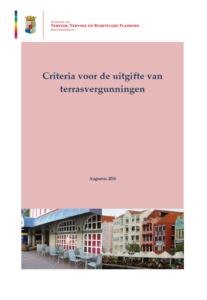 Konforme artíkulo 15 di e lei di òrdu públiko “ Landsverordening Openbare Orde (LOO) no ta permití pa pone algu den área públiko sin un pèrmit di Minister di Trafiko, Transporte i Planifikashon Urabon (VVRP). Esaki ta inkluí teras, ya ku e ta enserá ponementu di stul, mesa, etc. den área públiko. Komo ku ta hasi uso di tereno di gobièrnu, mester paga precario tambe. Ounke ku e doño di un establesimentu ta responsabel pa e tipo di muebles etc ku ta ser poné riba e teras, esaki nan tin efekto riba e bista i aparensia di nos área públiko. Nan por asta forma un peliger pa siguridat di peaton i outomobilista. I komo ku ta responsabilidat di Ministerio di VVRP pa perkurá pa nos áreanan públiko ta safe, den bon estado i tin un bon kalidat, ta nesesario pa fiha kriterionan ku un teras mester kumpli kuné. Tur petishon pa teras mester kumpli ku e kriterionan menshoná den e maneho aki. Criteria voor de uitgifte van terrasvergunningen